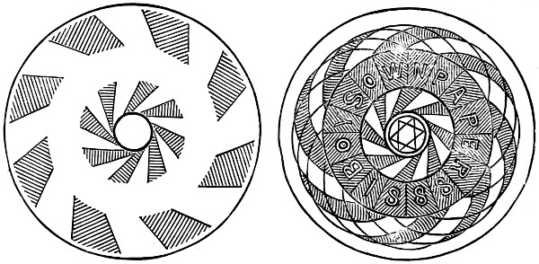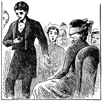 This game is not the same played by Irving Bishop a few years ago when he pretended to read the number of a bank-note held by a gentleman, but is quite as easy. This game was shown me by a friend home from Penang, where it is played a great deal, although not of foreign origin. It is played as follows:—One of the company goes out of the room while those remaining decide on something to be thought of; it may be something in the room or some idea suggested by something in the room. When this is decided upon, the absentee is admitted, and he has to guess what was thought of by asking questions, to which he only receives answer ‘Yes’ or ‘No.’ He may ask any question that will help him. The first question should be, ‘Is it a substance?’ ‘No.’ ‘Is it an abstract idea?’ ‘Yes.’ ‘Is the thing that suggested the idea in the room?’ ‘Yes.’ He should first localise the thing suggesting the idea by dividing the room by imaginary lines in all directions, and asking first if it is on one side, and then if it is on the other, always framing the question in such a manner that it can be answered by ‘Yes’ or ‘No’ as otherwise no answer will be given. The game allows of great ingenuity in selecting the idea[517] and also in working up to it in finding it out. One of the ideas I had to guess once was this—the quantity of silex or flint in the cane of a chair on which I was sitting. And another was this—the curve formed by the head of the hammer when giving the last stroke to a particular nail in the wall. These look difficult, but if properly managed will be found to be guessable. The game improves by practice, as after two or three times you will be able to find out ideas that would at first have appeared impossible.