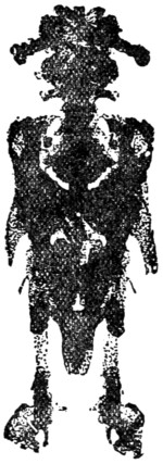 This is managed by having two backgrounds, one the height of the performer’s chin, the other—a little farther back—extending to the top of the scene. Both of these are black, and at a little distance the break in them is not distinguishable.[522] The performers walk on a platform at a lower level than the stage, the doll-bodies being fastened beneath their chins, hanging over the front drapery, and the doll’s feet resting on the platform in view of the audience. The performers also carry black curtains attached to them (not perceptible against the similar background), and through these wires, fixed to the arms and legs of the manikins, are pulled to give them motion. (See Fig. 2.) We have also described ‘Living Marionettes’ in another part of this volume.