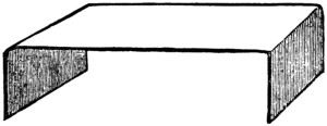 (2) The Card Bridge.—Take a visiting-card and bend it as in Fig. 2, so that the parts bent up are half an inch high. Now place this card on a table, resting on the two bent parts. The puzzle is to blow the card bridge right over on to its back. This will not be so easy a job as it appears. The secret is in blowing on the table about six inches in front of the bridge.