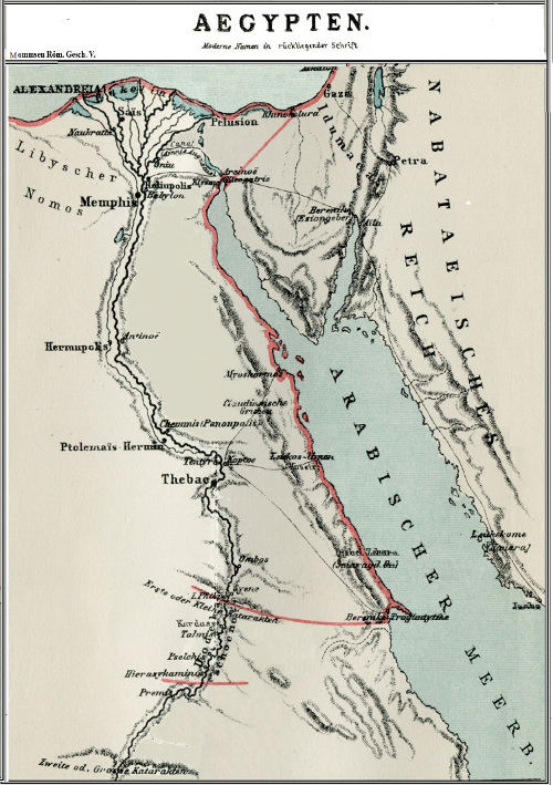 251 Our best information as to the kingdom of Axomis is obtained from a stone erected by one of its kings, beyond doubt in the better period of the empire, at Adulis (C. I. Gr. 5127 b), a sort of writing commemorative of the deeds of this apparent empire-founder in the style of that of Darius at Persepolis, or that of Augustus at Ancyra, and fixed on the king’s throne, before which down to the sixth century criminals were executed. The skilful disquisition of Dillmann (Abh. der Berliner Akademie, 1877, p. 195 f.), explains as much of it as is explicable. From the Roman standpoint it is to be noted that the king does not name the Romans, but clearly has in view their imperial frontiers when he subdues the Tangaites μέχρι τῶν τῆς Αἰγύπτου ὁρίων, and constructs a road ἀπὸ τῶν τῆς ἐμῆς βασιλείας τόπων μέχρι Αἰγύπτου, and further, names as the northern limit of his Arabian expedition Leuce Come, the last Roman station on the Arabian west coast. Hence it follows further, that this inscription is more recent than the Periplus of the Red Sea written under Vespasian; for according to this (c. 5) the king of Axomis rules ἀπὸ τῶν Μοσχοφάγων μέχρι τῆς ἄλλης Βαρβαρίας, and this is to be understood exclusively, since he names in c. 2 the τύραννοι of the Moscophages, and likewise remarks in c. 14, that beyond the Straits of Bab el Mandeb there is no “king,” but only “tyrants.” Thus at that time the Axomitic kingdom did not reach to the Roman frontier, but only to somewhere about Ptolemais “of the chase,” just as in the other direction not to Cape Guardafui, but only as far as the Straits of Bab el Mandeb. Nor does the Periplus speak of possessions of the king of Axomis on the Arabian coast, although he on several occasions mentions the dynasts there.