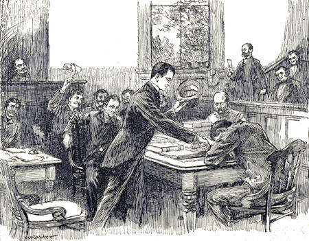 As soon as a little quiet was restored and he could make himself heard the judge ordered the sheriff to arrest Ben Watkins on the charge of perjury. That officer attempted to obey the order, but it was too late; Ben had disappeared. Taking advantage of the momentary confusion that followed the verdict he had slipped from the court-room. Five minutes later he was on board a fast train westward bound; nor from that day to this has any thing been heard from him directly. He is supposed to be in one of the new mining regions of the far West, but as the railroad company have not seen fit to prefer a charge against him for robbing their safe, nobody has cared to look him up.