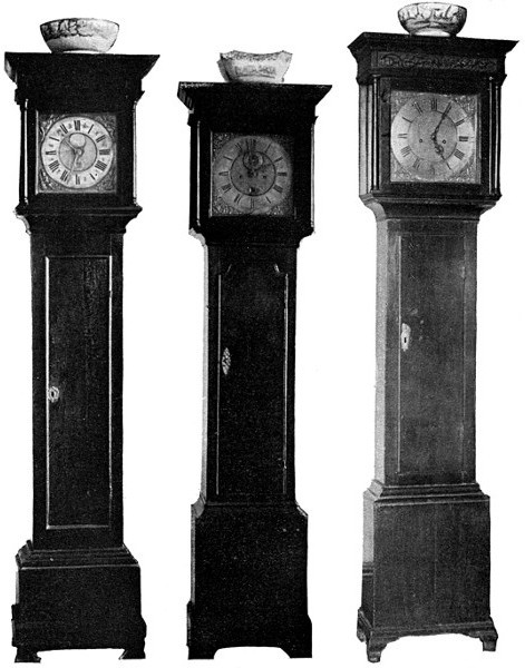 The first long-case pendulum clock was made by Thomas Tompion in 1681 and the prefix “de” to names was dropped about 1700, so it would be interesting to know how many clocks are still in existence bearing the “de” in front of the surname. I have had clocks offered to me said to be 300 or 400 years old, while one man thought his would be at least 500; when I stated that I had read in my clock book that 240 years was the limit he disdainfully brushed that opinion aside with the remark, “Oh, books! Do you believe all you read?”