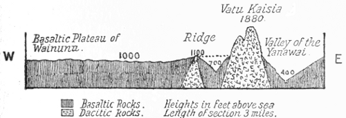 | Profile and Geological Section of Vanua Levu, across the island from the Sarawanga (north) coast to the Yanawai (south) coast | 107 | |