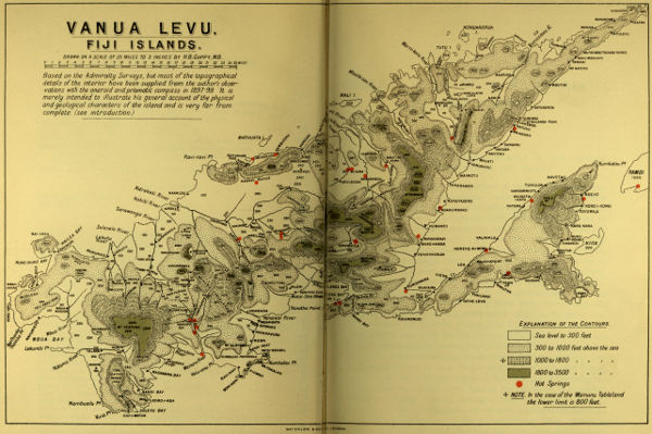 Destiny led me to Vanua Levu in the following fashion. With the relief party to take me down from Mauna Loa there arrived a well-known German naturalist who, like myself, had been interested in coral-reef investigations. We discussed this warm topic at an elevation of nearly 14,000 feet above the sea, with the thermometer at 20° F. As we sipped our hot coffee and listened to the occasional “boom” from the bottom of the great crater, at the edge of which we were camped, I remarked to my friend that I was thinking of spending some months in Samoa. To this he good-humouredly replied that I might leave Samoa to his countrymen and describe one of the large islands of Fiji. International rivalry over that group of islands was then rather keen. However, Dr. K. went to Samoa, and I have now completed this volume on the geology of Vanua Levu, Fiji.
