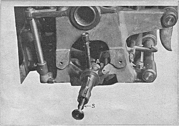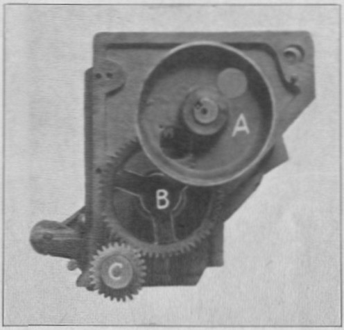 The friction clutch spring S (Fig. 11) is sometimes too weak, and should be strengthened or renewed. To take out this spring, unscrew the cap or end of shaft as shown in Fig. 11.