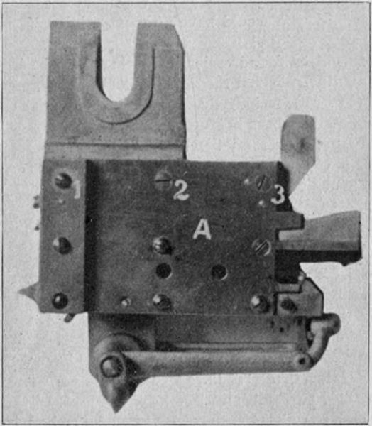 If the vise automatic is set this way it will stop mold disk nearly 1-16 inch away from matrices, leaving the first elevator free to lift up and a matrix to be taken out. This not only prevents a squirt, but saves the ears of the matrices in many cases.
