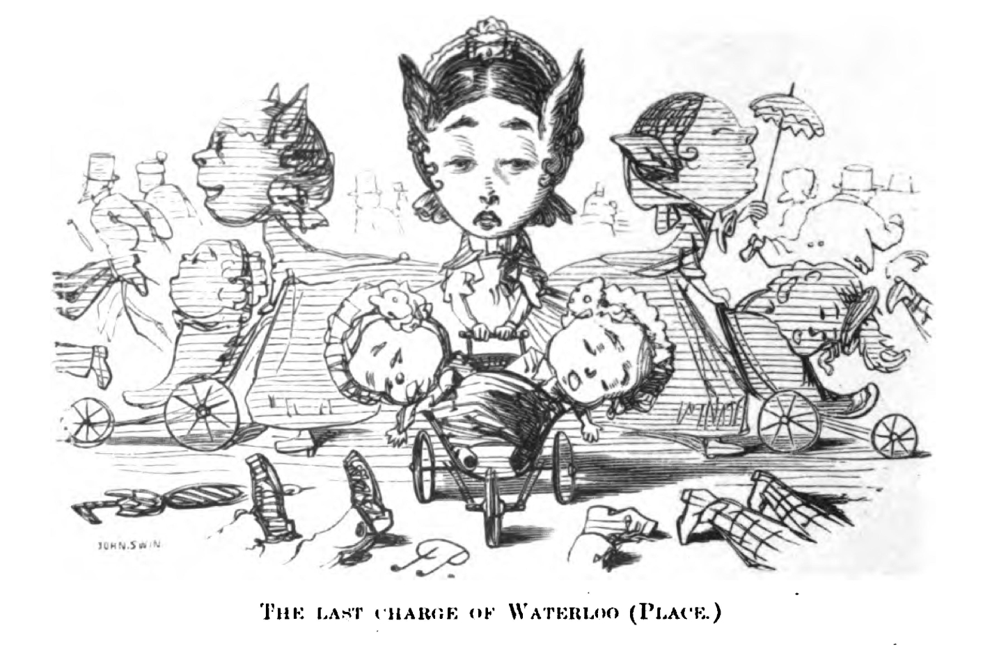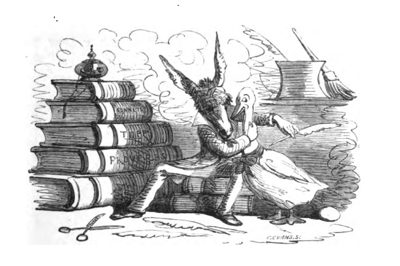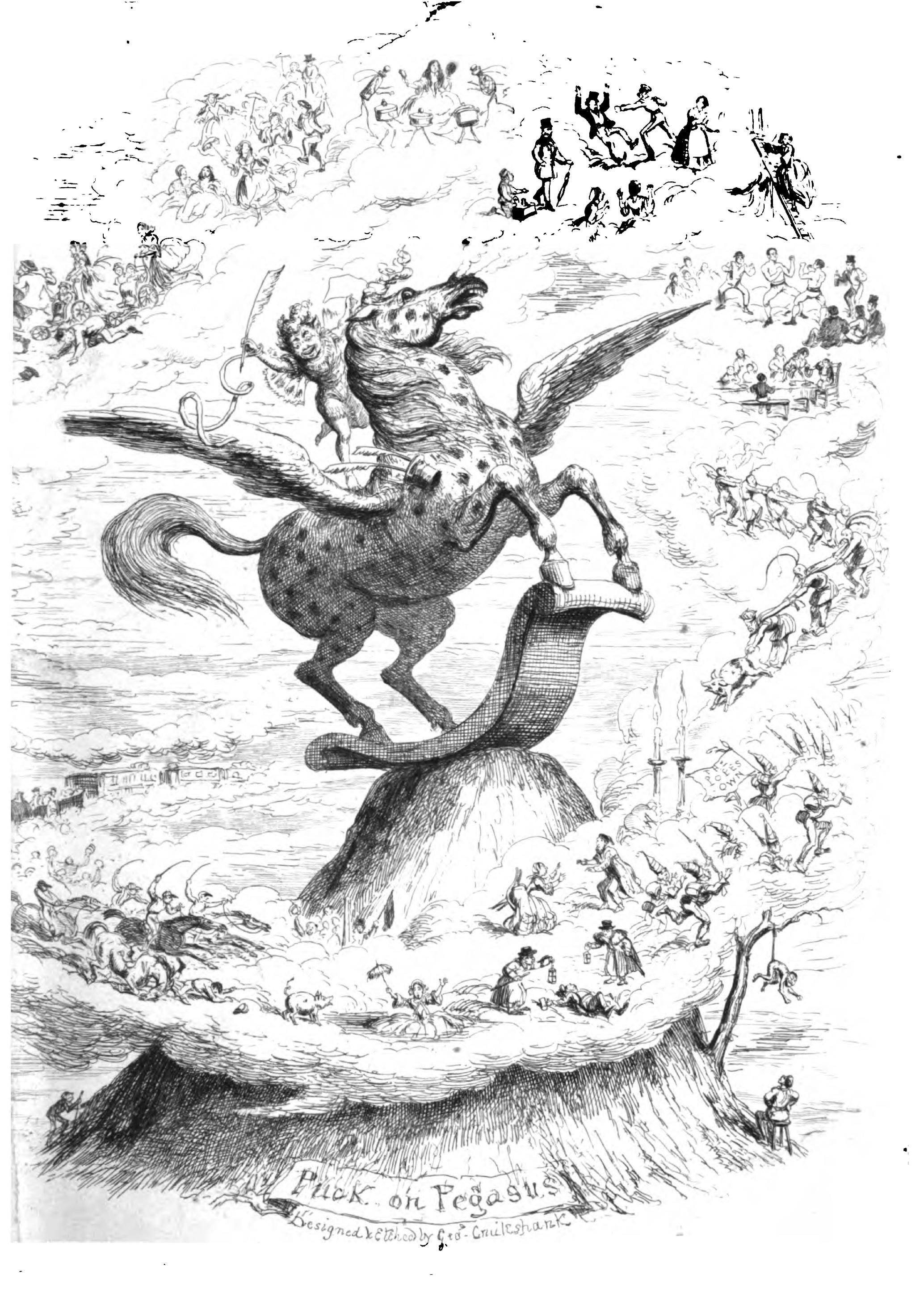 "When a gentleman means to be absurd, and at the same time can support his pretensions to amuse his readers with cleverness, we know how to accost him. 'Puck on Pegasus' is full of those eccentricities which make one laugh in spite of oneself, or in unison with oneself, according as one takes it up in a grave or a gay humour. It reminds one of the Bon Gaultier Ballads of some years ago.... The illustrations are capital, as they were likely to be considering whose they are."