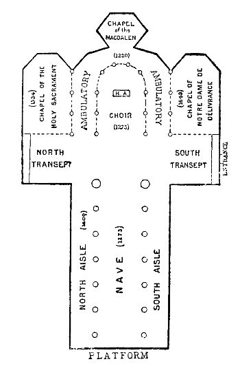 A single instance will show the method upon which I intend to proceed better than any amount of general description. A church, as a rule, is built over the body or relics of a particular saint, in whose special honour it was originally erected. That saint was usually one of great local importance at the moment of its erection, or was peculiarly implored against plague, foreign enemies, or some other pressing and dreaded misfortune. In dealing with such a church, then, I endeavour to show what were the circumstances which led to its erection, and what memorials of these circumstances it still retains. In other cases it may derive its origin from some special monastic body—Benedictine, Dominican, Franciscan—and may therefore be full of the peculiar symbolism and historical allusion of the order who founded it. Wherever I have to deal with such a church, I try as far as possible to exhibit the effect which its origin had upon its architecture and decoration; to trace the image of the patron saint in sculpture or stained glass throughout the fabric; and to set forth the connection of the whole design with time and place, with order and purpose. In short, instead of looking upon monuments of the sort mainly as the product of this or that architect, I look upon them rather as material embodiments of the spirit of the age—crystallizations, as it were, in stone and bronze, in form and colour, of great popular enthusiasms.
