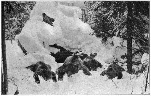 In one of the corridors on the first floor leading from the main staircase to some of the bedrooms is displayed a fine group, consisting of a female bear and three cubs killed by Count Potocki last year in Northern Russia; while skins of three half-grown cubs shot some years ago in Lithuania ornament the floor. Bears, it may be observed, are believed to have13 disappeared some two centuries ago from the neighbourhood of Antoniny, although they lingered considerably longer in Pilawin. A wolf was, however, killed near the palace only last year, and a second soon after our visit, in September, close to where we changed horses.