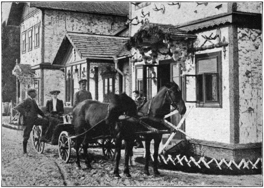 At 5.10 A.M. on Thursday (only ten minutes behind our scheduled time) we reached Schepetowka station, where we found an open carriage, drawn by four horses abreast, in waiting; and in five minutes we were on our way to Antoniny, the country8 seat of the Count and Countess Potocki. Small strongly-built phaetons with varnished wood-work are used for travelling. They are built at Vienna, and can be driven either with a four-in-hand or four abreast. A four-horse team is always kept ready at each changing-station. When travelling at night a smaller vehicle goes in front with torches. For baggage a second carriage is provided.