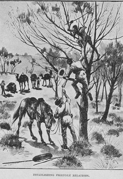 How I used to envy those horsemen, and longed for the time when I could afford horses or camels of my own, to go away back into the bush and just see what was there. Many a day I spent poring over the map of the Colony, longing and longing to push out into the vast blank spaces of the unknown. Even at that time I planned out the expedition which at last I was enabled to undertake, though all was very visionary, and I could hardly conceive how I should ever manage to find the necessary ways and means.