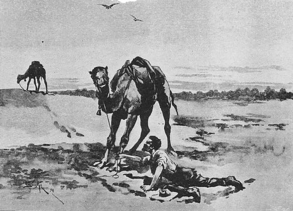 Before leaving Coolgardie I had to perform the melancholy task of selling off my camels and all belongings. I have seldom felt anything so deeply as the breaking up of our little band, and the sale of my faithful animals. However, it was a matter of necessity, for much as I wished to pension off my favourites I was not in a position to do so, and eventually made my exit from the Colony in much the same state as that in which I arrived.