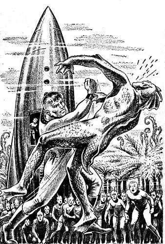Shad appeared in the throng. He looked more than seven feet tall and I would have sworn he had more than six eyes. The throng grew so quiet you could hear these tame Venusians slobbering as they thirsted for human blood.