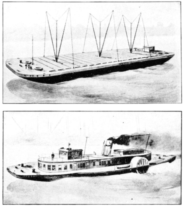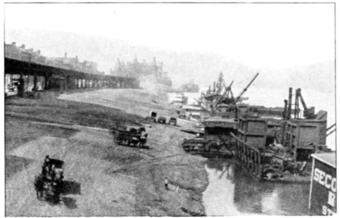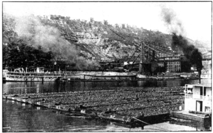 The water-borne commerce on this river is of the cheapest character, consisting almost entirely of sand and gravel dredged from the rivers and coal floated down the Monongahela and delivered along the shores. All this sand, gravel and coal is carried in low-lying barges or scows moved by tugs or towboats.