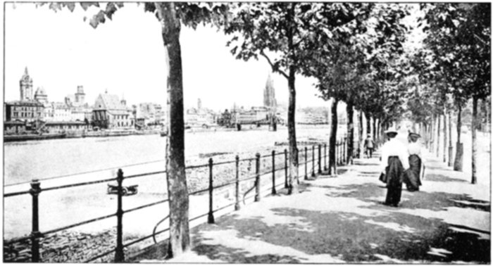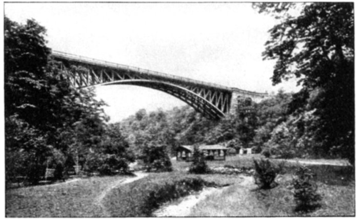 The other railroad bridge crossing the river within the city limits is the Thirty-third Street viaduct of the Baltimore and Ohio Railroad. This is a link in the Baltimore and Ohio Railroad between the East and the West and carries an enormous traffic amounting each year to about 217,000 passengers and 24,330,000 tons of freight, express and other trains.