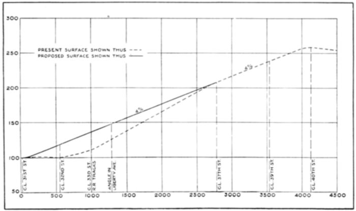 [33] The maximum gradients here given assume the improvement of the short pitches now existing on some of the bridge approaches.