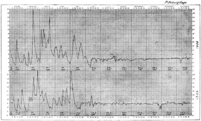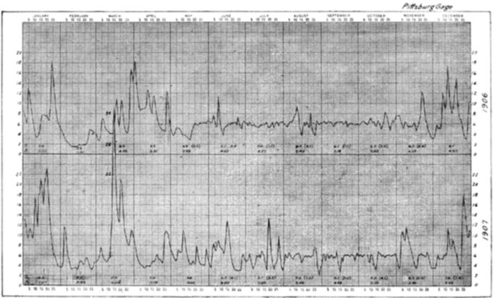 Since the figures for the present traffic over the Allegheny River bridges are used for comparison with the present river traffic, and since the former must continue to grow steadily with the growth of the Pittsburgh industrial district, it seems quite clear that no conceivable growth in the latter can seriously affect the overwhelming predominance of the bridge traffic in amount and value.[44]