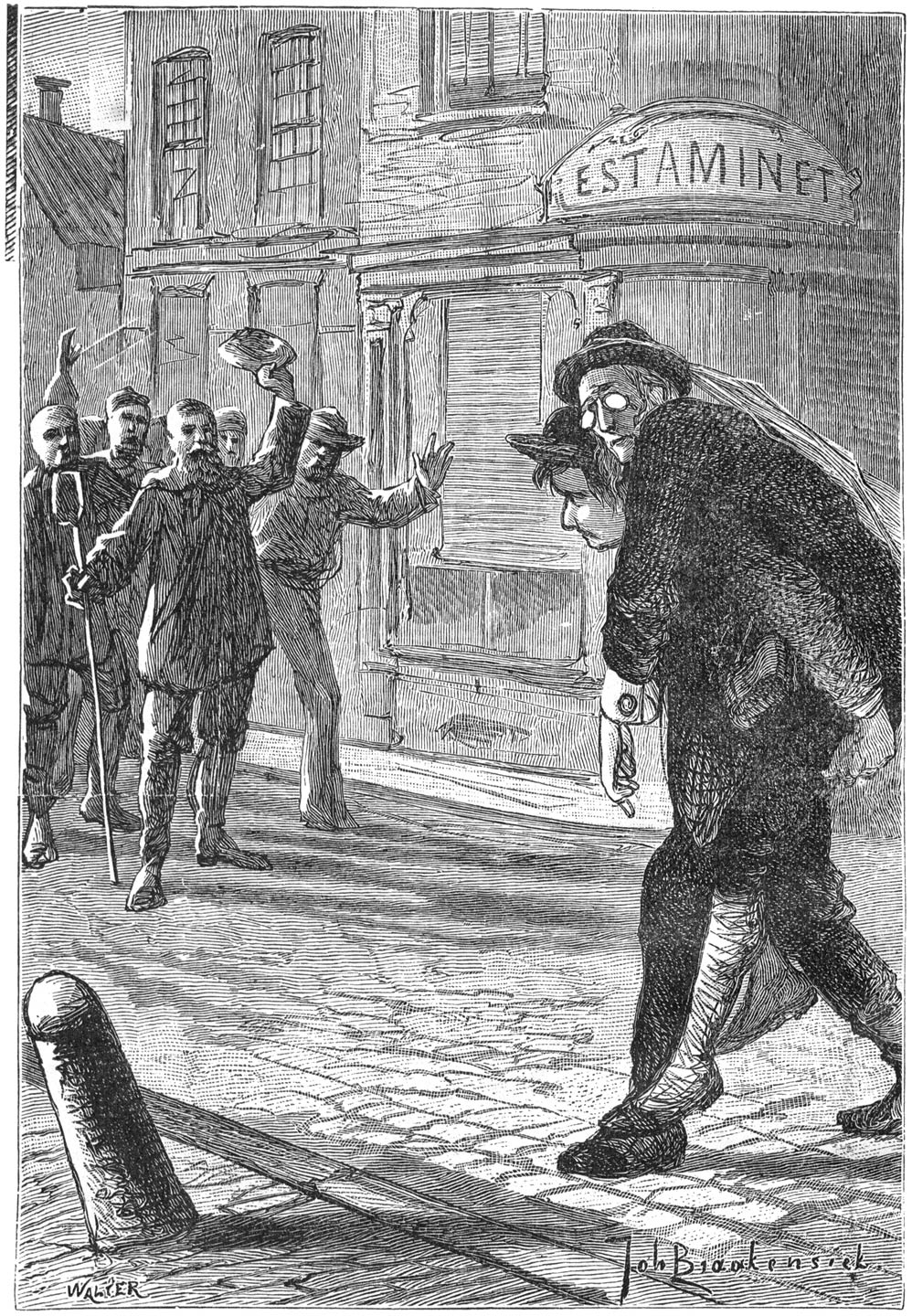 Deze hield op gewone wijze zijn intocht, aangekondigd door stormgeloei en voorafgegaan door vliegende buien, waarvan het niet uit te maken viel, of ze uit regen, uit hagel, dan wel uit sneeuw bestonden; maar ’t zij droppels, korrels of vlokken, eens met de straatsteenen in aanraking, verdween elk onderscheid in vorm, en weldra boden de meeste Amsterdamsche straten den wandelaars een chocoladekleurig voetbad aan, dat een varken zou hebben doen watertanden.