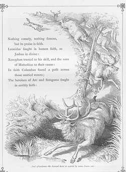 Illustrations embodying the initial letter of a stanza, that extend down and across the page, have been truncated so as to fit to the left of the stanza while retaining the initial letter.