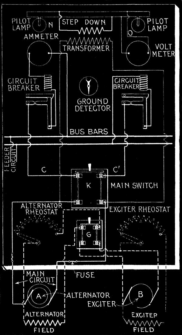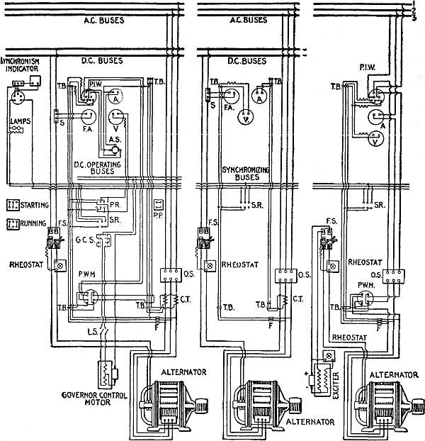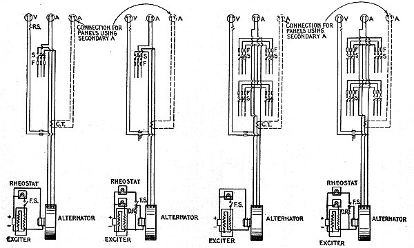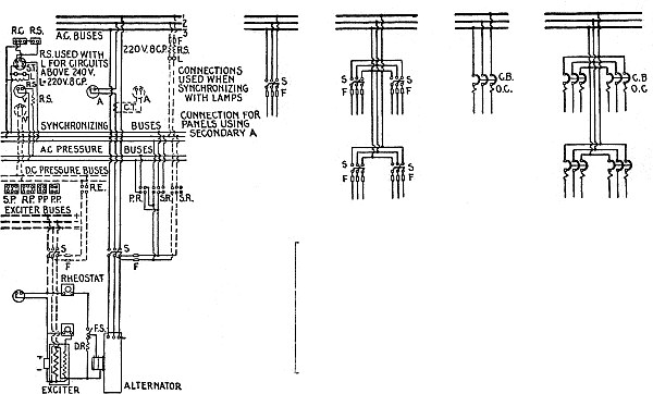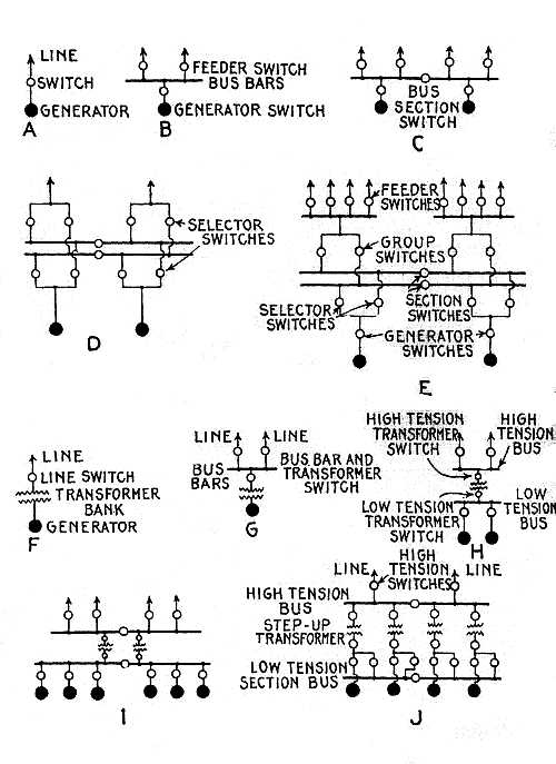 General principles: diagram—small plant a.c. switchboard—switchboard panels; generator panel; diagram of connections—simple method of determining bus bar capacity—feeder panel—diagrams of connection for two phase and three phase installations.