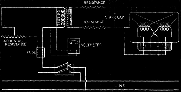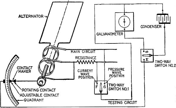 In making insulation breakdown tests on cables, insulators, or machinery, large errors may be introduced unless the wave form at the time of the test be known. It is not sufficient even to know that the testing alternator gives a close approximation to a sine wave at no load; since if the capacity current of the apparatus under test be moderately large compared with the full load current of the testing alternator, the charging current taken may be sufficient to distort the wave form considerably, thus giving wrong results to the disadvantage of either the manufacturer or purchaser.