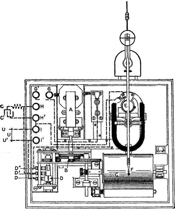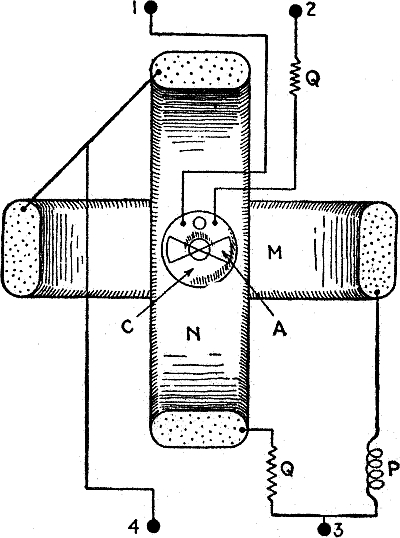 Fig. 2,592, shows the necessary apparatus and connections for applying the ballistic galvanometer method. The contact breaker consists of a commutator having an ebonite or insulating segment and two brushes. 1847