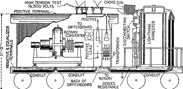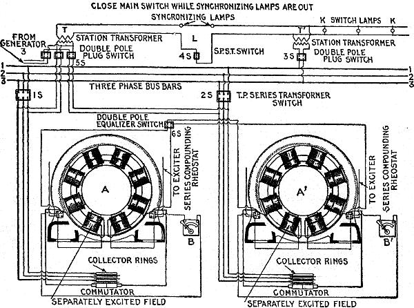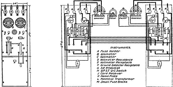 The term "management"—selection; general considerations—selection of generators; efficiency of generators; size and number; regulation—installation; precautions; handling of armatures; assembling a machine; speed of generators; calculation of pulley sizes; gear wheels—belts; various belt drives; horse power transmitted by belts; velocity of belt; endless belts—switchboards; essential points of difference between single phase and three phase switchboard wiring; assembling a switchboard; usual equipment. Operation of Alternators—alternators in parallel; synchronizing; lamp methods; action of amortisseur winding; synchronizing three phase alternators; disadvantage of lamp method—cutting out alternator; precautions; hunting—alternators in series. Transformers; selection; efficiency; kind of oil used; detection of moisture; drying oil; regulation; transformers in parallel; polarity test—motor generators; various types and conditions requiring same—dynamotors; precautions—rotary converters; objections to single phase type; operation when driven by direct current, by alternating current; most troublesome part; efficiency; overload; starting; starting current. Electrical measuring instruments; location; readings; station voltmeters; points relating to ammeters; attention necessary; usual remedies to correct voltmeter—how to test generators; commercial efficiency; various tests. Station Testing: resistance measurement by "drop" method—methods of connecting ammeter voltmeter and wattmeter for measurement of power—motor testing: single phase motor—three phase motor, voltmeter and ammeter method; two wattmeter method; polyphase wattmeter method; one wattmeter method; one wattmeter and Y box method—three phase motor with neutral brought out; single wattmeter method—temperature test, three phase induction motor—three phase alternator testing: excitation or magnetization curve test—synchronous impedance test—load test—three phase alternator or synchronous motor temperature test—direct current motor or generator testing: magnetization curve—(shunt) external characteristic—direct current motor testing; load and speed tests—temperature test, "loading back" method—compound dynamo testing: external characteristic, adjustable load—transformer testing: external characteristic, adjustable load—transformer testing: core loss and leakage or exciting current test—copper loss—copper loss by wattmeter measurement and impedance—temperature—insulation—internal insulation—insulation resistance—polarity—winding or ratio tests.
