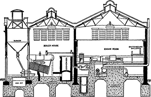 Classification—central stations; types: a.c., d.c., and a.c. and d.c.; reciprocating engine vs. turbine—location of central stations; price of land; trouble after erection; water supply; service requiring direct current—size of plant; nature of load; peak load; load factor; machinery required; example; factors of evaporation; grate surface per horse power—general arrangement of station; belt drive with counter shaft; desirable features of belt drive; conditions, suitable for counter shaft drive; location of engine and boilers; the steam pipe; piping between engine and condenser; number and type of engine; superheated steam; switchboard location; individual belt drive; direct drive—station constructionfoundationswallsroofsfloorschimneys; cost of chimneys and mechanical draft; high chimneys ill advised—steam turbine; types: impulse and reaction; why high vacuum is necessary; the working pressure—hydro-electric plants—water turbines; types: impulse, reaction—isolated plantssub-stations; arrangement; three phase installations; reactance coils in sub-stations; portable sub-stations.