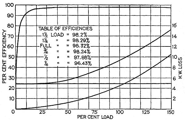 The amount of power as ascertained from the calibration curve of the motor for the voltage and current used therein when driving the generator as just explained, is a measure of these two losses. The 2112 power thus used is practically constant at all loads and is about 2 per cent. of that necessary to drive the generator at full load.