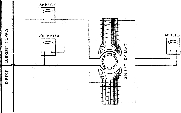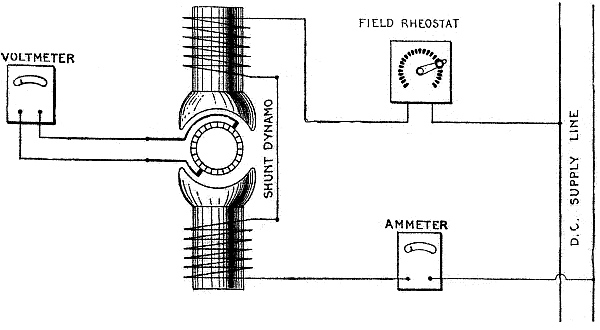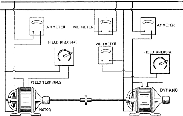 There yet remains to be determined the armature resistance loss and the field resistance loss. As for the calibrated motor, this may be disconnected from the dynamo, as it need not be used further in the test.