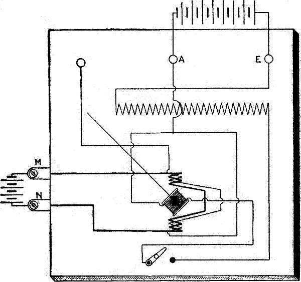 In the zero method either a contact maker or contact breaker may be used in connection with a galvanometer and slide wire bridge, as shown in figs. 2,595 and 2,596.