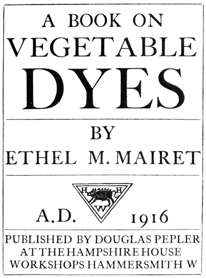 It is quite certain that a great many of the handicrafts that have depended upon commercial dyes would produce infinitely better work if they dyed their raw material themselves.