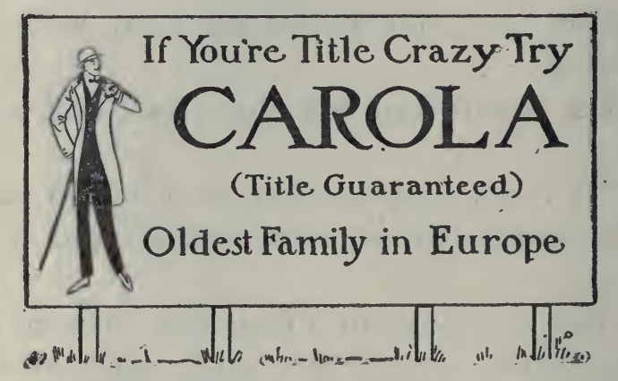 “But she didn't know how to advertise,” I said. “Nobody knew that she had money. One personal in the London Mail or the Paris Herald would have crowded the Excelsior Hotel with impoverished noblemen.”
