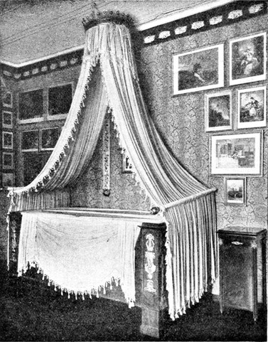 1. Man kann annehmen, daß der Raum, der einem zur Verfügung steht, klein ist, wie in den meisten Schlafzimmern. Man wird daher mit den Dimensionen das Möglichste tun, um den Eindruck von Geräumigkeit[S. 127] und Luftigkeit hervorzubringen. Der Raum soll nicht nur angenehm sein für den Schlafenden, sondern auch für das Erwachen.