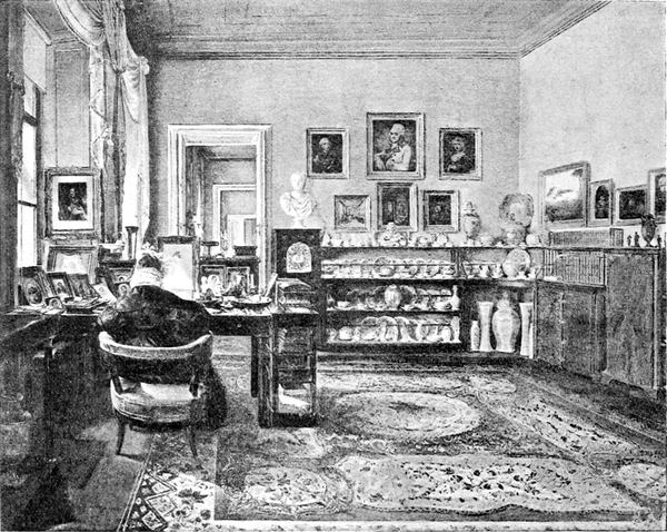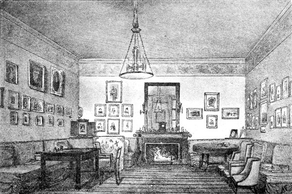 Man glaube indessen nicht, daß die Sache so brandneu ist, daß man es nicht wagen dürfe, sie aufzunehmen. Bei den Künstlern gehört es zur Überlieferung, die ganz selbstverständlich ist, daß sie ihre Gäste im Arbeitsraum, also in der Werkstatt, im Atelier empfangen. Das Atelier ist zugleich ihr Salon. Darum unterhält man sich bei den Künstlern am besten, weil man von ihrem geistigen Wesen ganz umgeben ist, von allen Dingen, die diese Geistigkeit sichtbar machen. Auf diese Art kann[S. 75] es jedermann halten. Nicht jeder ist Künstler, wird man sagen. Aber jeder Gebildete hat geistige Interessen irgendwelcher Art oder treibt einen geistigen Sport, musiziert, sammelt, liest. Oder sollte ich allzu optimistisch sein? Man gebe einem Salon das Gepräge eines geistigen Sammelpunktes. Wer aber in den neuen, oben dargestellten Grundsätzen eine Festigung durch das Beispiel der altehrwürdigen Tradition braucht, der lese die folgende Schilderung des idealen Zimmers, das sich Adalbert Stifter einrichten wollte, den man in dieser Hinsicht ganz gut als einen Vorläufer der Modernen betrachten kann.