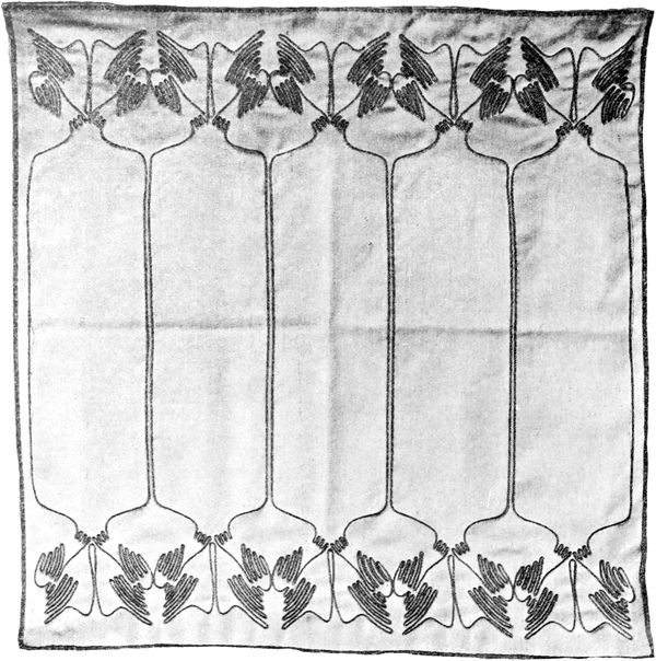 Die weiblichen Handarbeiten, die in diesem Zusammenhange erwähnt werden müssen, bedürfen gleichfalls einer künstlerischen Reform. Hier sollte eigentlich der Ausgangspunkt der häuslichen Kunstpflege sein. Leider hat auf diesem Gebiete die Schablone jede Regung von Selbständigkeit und Geschmack erstickt. Die Arbeit ist zu einer ermüdenden, tötlich langweiligen Übung, zum bloßen mechanischen Ausnähen von allerlei Lappen herabgesunken und rechtfertigt die Verachtung, mit der die radikal Gesinnten die geistlose Beschäftigung ablehnen. Trotzdem sind sie nicht zu entbehren. Sie werden wieder ein Segen sein, wenn die rein mechanische Handarbeit zur künstlerischen Arbeit geadelt ist, was der Fall sein wird, wenn die »handarbeitenden« Frauen die Muster, die sie ausführen, selbst entwerfen auf Grund klarer Kenntnis der Technik, des Materials und des Zweckes.