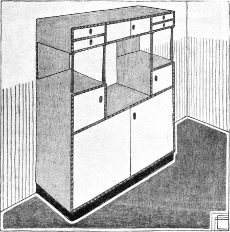 Das praktische Möbel ist selten teuerer, meistens sogar billiger, als die schleuderhaft und gedankenlos fabrizierte Marktware. Raum, Zeitersparnis und Bequemlichkeit muß die Möbelkonstruktion für die Offizierswohnung gewähren, vor allem die Möglichkeit kompendiös zu packen, so daß vier Zimmer in einem Transportwagen ohne die Gefahr der Beschädigung gut untergebracht werden können. Zusammenlegbarkeit nach Art der amerikanischen Missionärmöbel oder der einfache Kofferstil werden in diesen Fällen zu den besten Lösungen führen. Auf Schmuck kommt es beim praktischen Möbel nicht an. Er ist auch keine Bedingung der Schönheit.