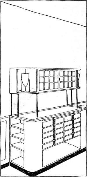 Über das Glas wäre manches zu sagen. Gewöhnlich sitzt das Glas wie ein Blumenkelch auf hohem dünnen Stengel, was zwar anmutig anzusehen, aber in sehr hohem Maße unpraktisch ist. Erstens wird die Standfestigkeit gering, bei leiser Berührung fällt das Glas um, und zweitens ist der Stengel beim Reinigen allzuleicht abzudrehen. Aber auch dickes Glas ist nicht zu empfehlen, weil nicht gut daraus zu trinken ist. Zwischen Lippe und Flüssigkeit soll sich so wenig Glaswand befinden als immerhin möglich. Aus dieser Voraussetzung ergibt sich die organische Form des Trinkglases von selbst; es müßte einen starken, feststehenden, starkwandigen Fuß und Stengel haben und müßte gegen den Rand ganz dünn verlaufen, um als angenehmes Glas empfunden zu werden. Handsam soll das Glas sein und mundgerecht. So einfach die Lösung scheint, ich habe ein solides Glas noch nicht gefunden.