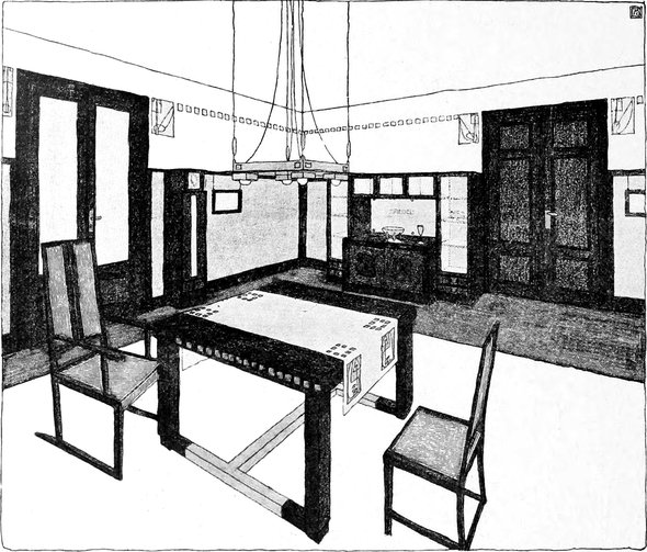 Immer mehr richten sich die Blicke auf Wien. Dort ist ein neues Künstlergeschlecht, das zum größtenteil aus der Wagnerschule hervorgegangen ist, aufgestanden und hat mit selten gesehener Eintracht und Geschlossenheit die moderne Raumkunst geschaffen. Künstlerisch und wahlverwandtschaftlich steht es der Gruppe Mackintosh am nächsten. Es hat den Vorzug der größten Frische und Natürlichkeit. Bei aller strengen künstlerischen Konsequenz geht ein liebenswürdiger Wienerzug durch das ganze Schaffen dieser Künstler, die zur Sezession gehören oder sich zu ihren Anschauungen bekennen. Sie haben sich bereits das Ausland erobert. Heute verlangt man schon den »Wiener Stil«. Josef Olbrich hat ihm eine Insel im Ausland geschaffen. Prof. Josef Hoffmann ist sicherlich die stärkste und konsequenteste Kraft unter den[S. 16] Neuen. Prof. Kolo Moser schafft Werke von fast femininer Grazie. Vornehm und zweckvoll sind Leopold Bauers Schöpfungen. Was die Schulen von Prof. Hoffmann, K. Moser, A. Roller, Baron Mirbach, A. Böhm auf allen Gebieten des Kunstgewerbes und der häuslichen Kunst leisten, wird bahnbrechend wirken. Zahlreiche Schüler sind erfolgreich im Auslande tätig. Unter diesen verdient Max Benirschke in Düsseldorf besondere Erwähnung. Die Architekten und Kleinkunst gehen hier Hand in Hand und erreichen solcherart die bewundernswerte Einheit eines Stils, der unmittelbar aus dem Leben quillt und für das Leben schafft. Die moderne Wohnung und ihre Ausstattung wird solcherart, ob sie nun einfachen oder leichten Verhältnissen entspricht, den Stempel einer vornehmen Kultur tragen, die Wesenszüge einer geschmackvollen, gebildeten, modernen Persönlichkeit.