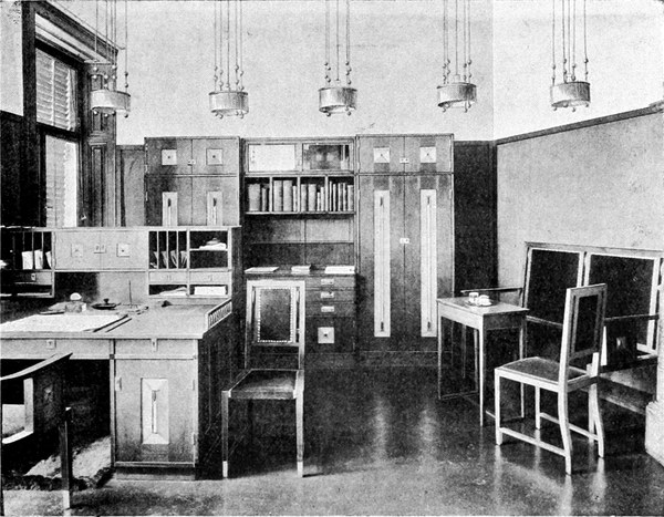 Ein Zusammenhang zwischen Junggesellenwohnung und Herrenzimmer ist durch den Umstand gegeben, daß auch das letztere Wohn- und Arbeitsraum oder auch Salon des Hausherrn ist, wie der Name »Herrenzimmer« überdies schon sagt. Es kommt im Hauswesen dort vor, wo die Hausfrau entweder ihren »Damensalon« oder ihr »Boudoir« hat, oder wo man aus Ökonomie auf den »Salon« überhaupt verzichtet und das eine zu erübrigende Gesellschaftszimmer vorzugsweise auf die Bedürfnisse des Hausherrn hin zurechtmacht. Massive, dunkel gebeizte[S. 106] oder polierte Möbel mit einfachen blanken Beschlägen finden sich darin, ein großer Bücherschrank, ein entsprechender Arbeits- oder Schreibtisch, große gepolsterte Sitzmöbel mit grauem oder braunem Lederüberzug, alles ernst und einfach und von der gewissen Vornehmheit, die in der Gediegenheit überhaupt liegt. Ist der Hausherr Waffensammler, so findet sich ein Waffenschrank vor, überhaupt Möbel, die seinen besonderen Liebhabereien oder Berufszwecken dienen. In einfachen Rahmen hängen Bilder oder Stiche, manche kühne Modernität, »le Nu au Salon«, warum nicht? Ein Tropfen Pikanterie vermengt sich mit dem Duft schwerer Zigarren. So findet man es häufig. Aber das dominierende, ehrfurchteinflößende Möbel ist der große Schreibtisch. An ihn werden heute die persönlichsten Anforderungen gestellt, nicht weniger als an den guten Sessel. Hier hat eine gute Tradition mitgearbeitet. Aus dem Anfang des neunzehnten Jahrhunderts sind große, sorgfältig erdachte Schreibtische überliefert, große Diplomatenschreibtische mit verschließbarem Pultdeckel, einfach geistreich kombiniert, dem amerikanischen roll desk nicht unähnlich, ferner eine Unzahl verschiedenartiger[S. 107] Damensekretäre mit zahlreichen Fächern und durchaus verschließbar, als ein glänzendes Zeichen einer geistig ungeheuer regsamen Zeit. Man schrieb fleißig Tagebücher, unterhielt mit allen Zeitgenossen regen, brieflichen Verkehr. Auch der Schreibtisch von damals bildet gewissermaßen ein menschliches Dokument. Was so ein verwittertes Möbel nicht für Geheimnisse verbirgt, und was so einem Kasten für anmutige Rätsel abzulesen sind, diesen Läden, die einst vollgestopft waren mit Gedichten, Liebesbriefen, Prozessen und Romanzen, schweren Locken und anderen Liebeszeichen, gleich einem Riesensarg, der mehr Tote enthielt als mancher Gräberhain. Sentimentalitäten, nicht wahr? Aber ein Persönlichkeitszug ging durch die Dinge des Hausrats, das wollte festgestellt sein. Und einen Persönlichkeitszug will man den Dingen heute wieder geben. Der Schreibtisch sollte seinem Besitzer angemessen sein wie ein Kleid. Konstruktiv besitzt der amerikanische verschließbare Schreibtisch viele Vorteile, für das Privatzimmer ist er aber allzu bureaumäßig. Im Halbkreis geht die Tischplatte um den Sitzenden, auch die äußersten Enden in den Bereich seiner Hände rückend. Van de Velde’s Schreibtisch, der diese Form aufwies, war eine Sensation.