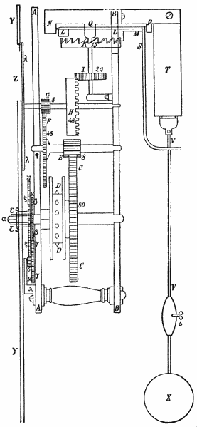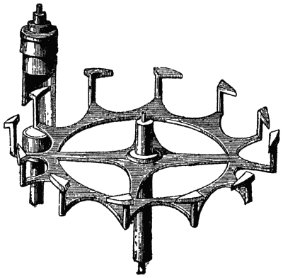[59] Er veröffentlichte diese Erfindung im Journal des Savants von 1675; Robert Hooke soll schon 1658 eine ähnliche Vorrichtung ausgedacht haben; er nahm aber kein Patent, weil er sich mit seinen Genossen nicht einigen konnte. Hautefeuille strengte sogar einen Prozeß gegen Huygens an inbezug auf Priorität der Erfindung der Spiralfeder. Ersterer erfand nebst vielem andern auch eine Pulvermaschine, das Vorbild der heutigen Gasmotoren, bei welcher schon ein Kolben zur Anwendung gelangte.
