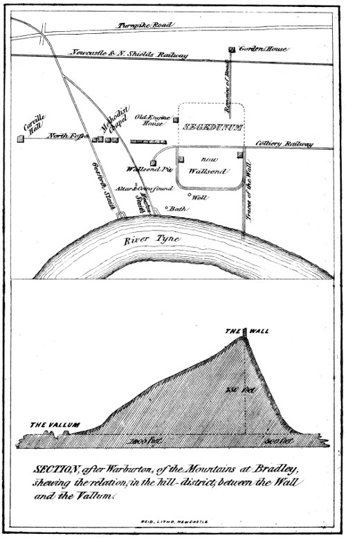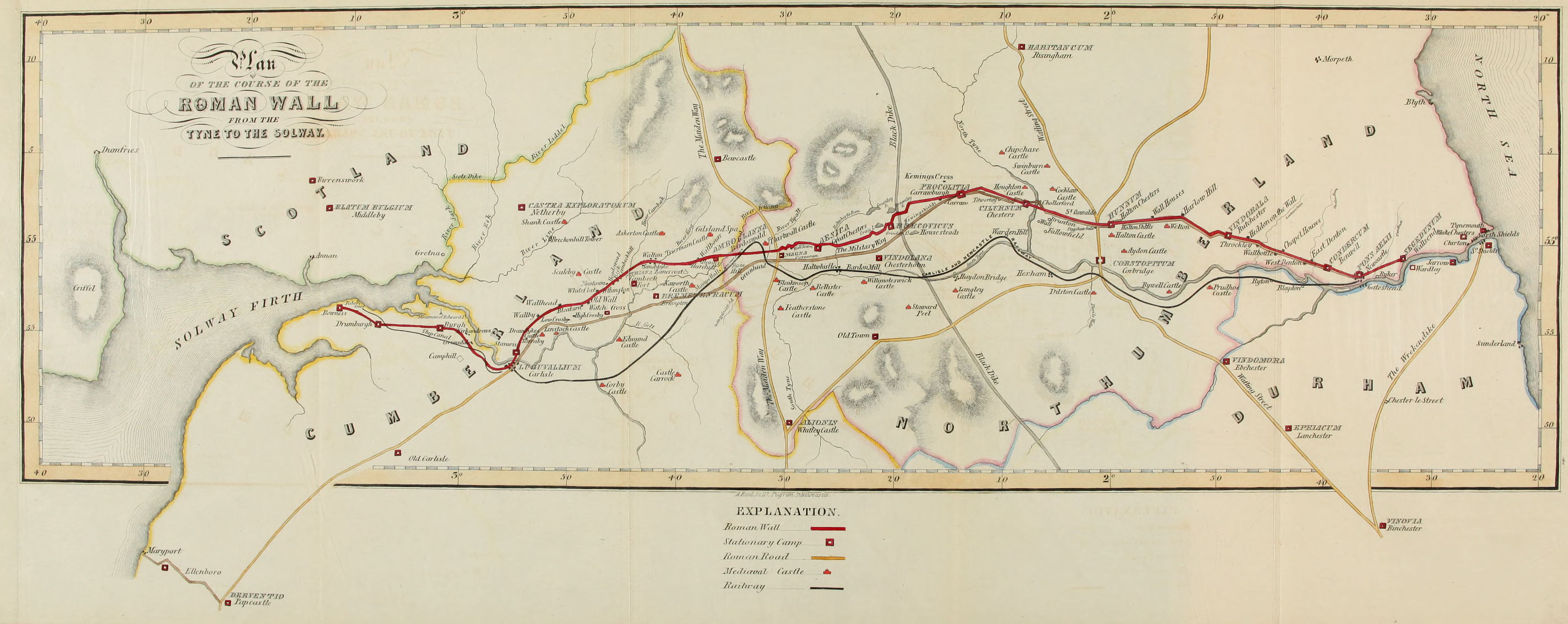 Two authors of great learning have treated of this renowned structure—Horsley, in the Britannia Romana, and Hodgson, in the last volume of his History of Northumberland. Both are treatises of considerable size, and both are, to a certain extent, rare. The Britannia Romana, moreover, describes the Wall, not as it is, but as it was more than a century ago. Hodgson’s work is of recent date, and forms a valuable storehouse of nearly all that is known upon the subject. The mind, however, of that amiable man and zealous antiquary was, at the time of its preparation, bending under the weight of his ill-requited labours, and he has failed to present his ample materials to the reader in that condensed and well-arranged form which distinguishes his previous volumes, and without which a book on antiquities will not arrest the attention of the general reader.