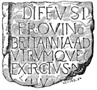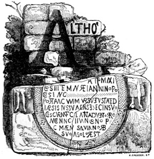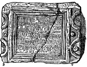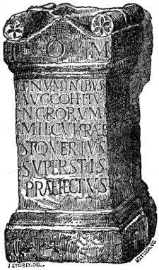 127. Some antiquaries have conceived, that in the last two words of the inscription, a reference is made to the emperor Septimius Severus. This cannot be admitted, for—1. The emperor’s name would not be placed after that of the prefect: 2. The term instante implies the discharge of a subordinate duty; for, not to mention other examples, the temple of which the Cilurnum slab records the restoration (p. 186), was built by command of Marius Valerianus, under the superintendence of (instante) Septimius Nilus: 3. That princeps was the designation of a subordinate officer in the army, appears not only from a collation of other inscriptions, but from the following statement of Manutius—'In a legion there were three kinds of foot soldiers, hastati, principes, and triarii, and in each there were ten centurions, who were called the first hastatus, the second hastatus, the third, and so on, up to the tenth; the first princeps, the second, and so on; but the triarii, the bravest of all, were named in a different manner, for they did not call them first triarius, but primipilus, or primipili centurio.'—Arch. Æl., ii. 88.