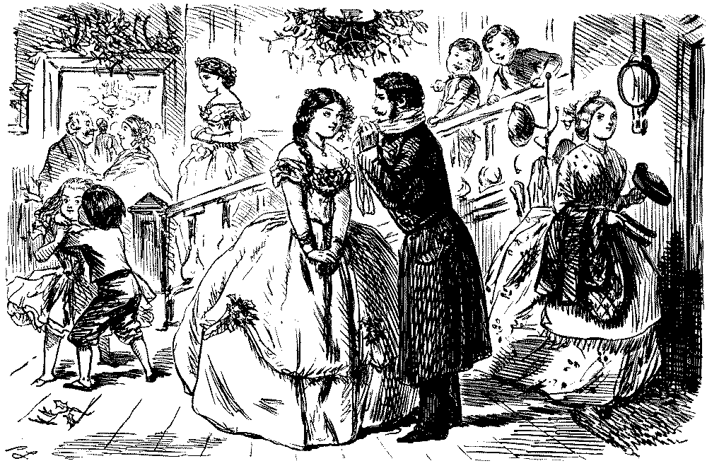THAT DISTINGUISHED RIFLE-SHOT, MR. PUNCH, HAVING DONE HIS DUTY LIKE A MAN, THROWS HIMSELF UNDER THE MISTLETOE, AND RECEIVES HIS JUST REWARD.