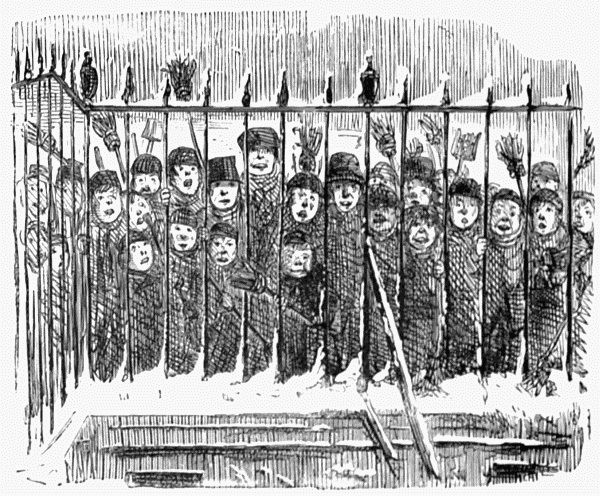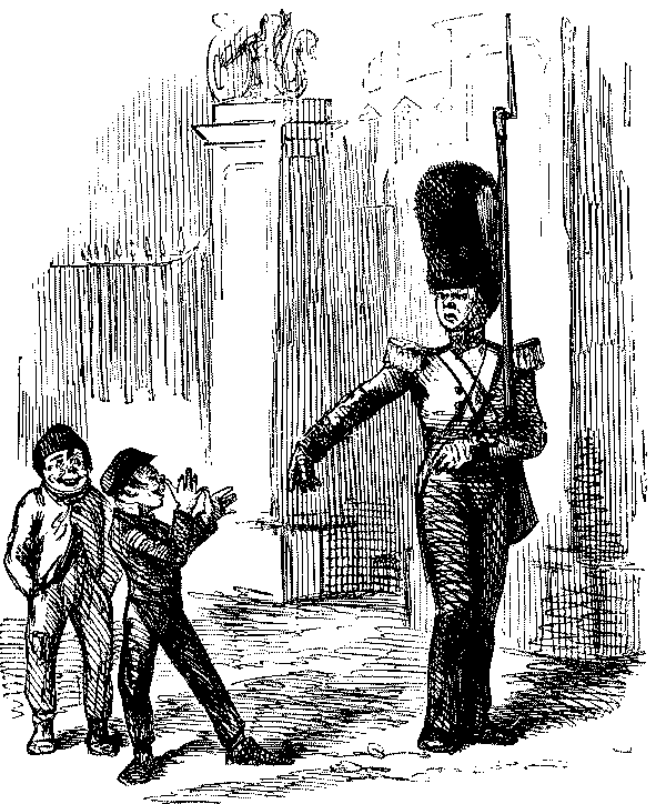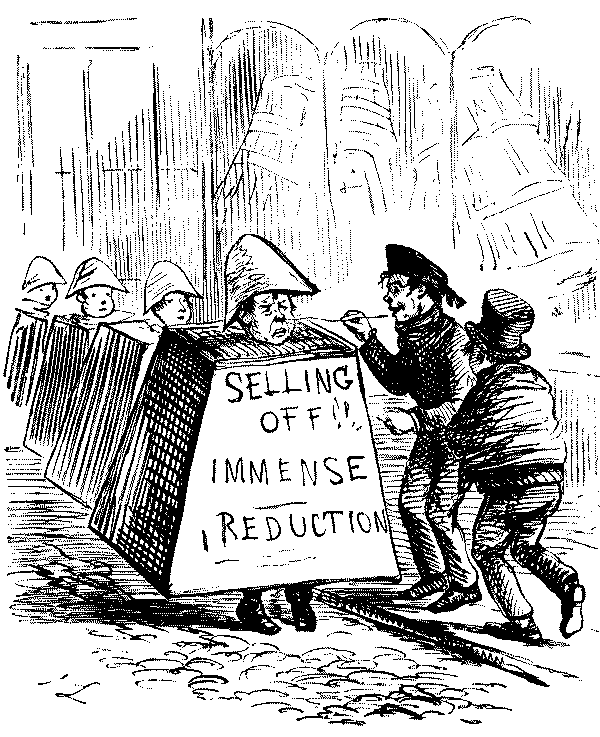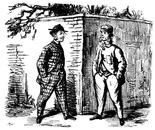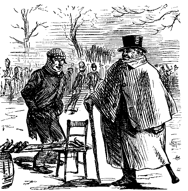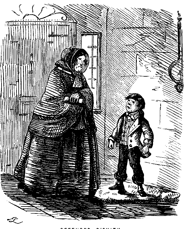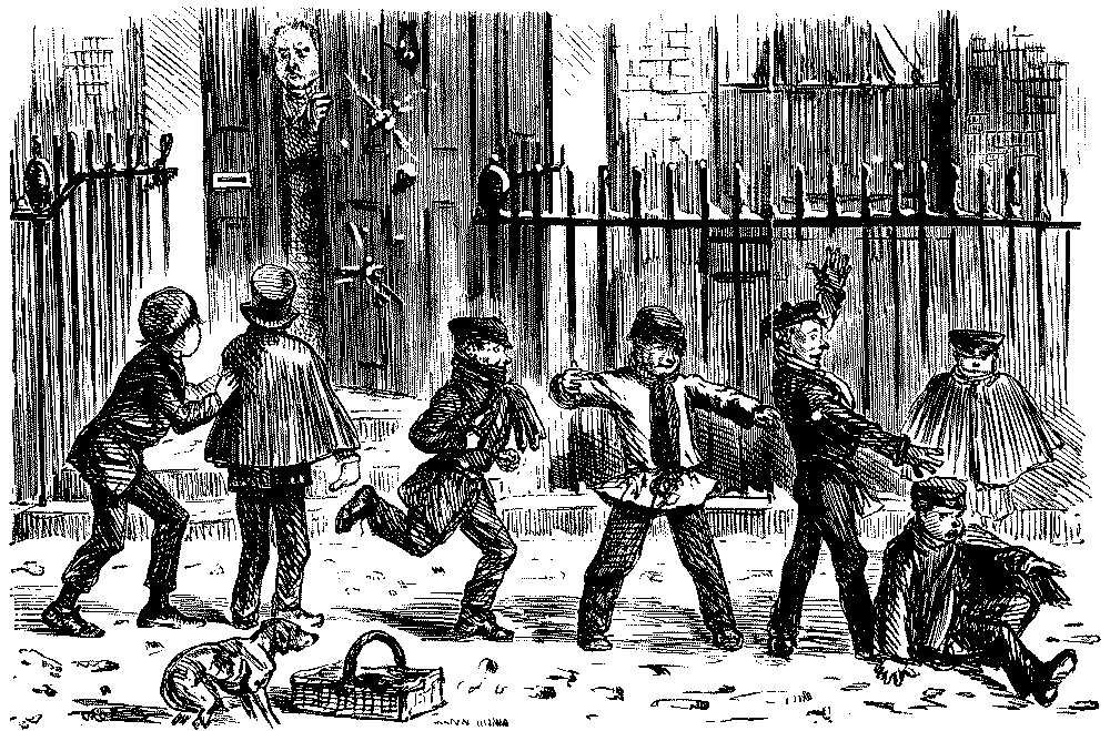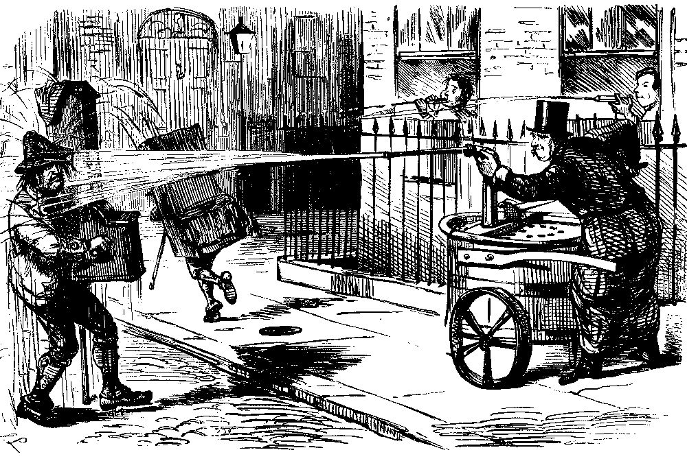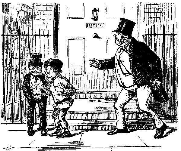 Street Boy. "I SAY, COOKY? THEY JUST ARE A-FININ' OF 'EM ALL ROUND THE SKVARE—GIVE US A SHILLIN' AND I'LL SWEEP YOUR DOOR AFORE THE PLEECEMAN COMES."