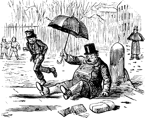 OF ALL FOOLISH THINGS, THE MERE PUN IS PERHAPS THE MOST FOOLISH.—NOW, HERE'S A FELLOW (PROBABLY A MEMBER OF THE ST—CK EXCH—GE) WHO, IN SPITE OF HIS REALLY PERILOUS CONDITION, SAYS, "THAT HE CAME OUT FOR A (W)HOLE HOLIDAY—AND HAS GOT IT!"