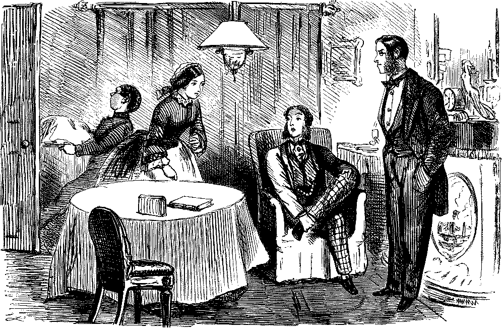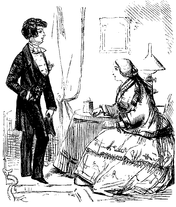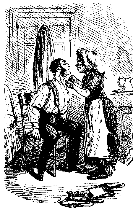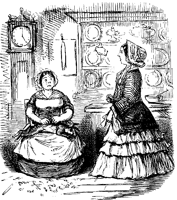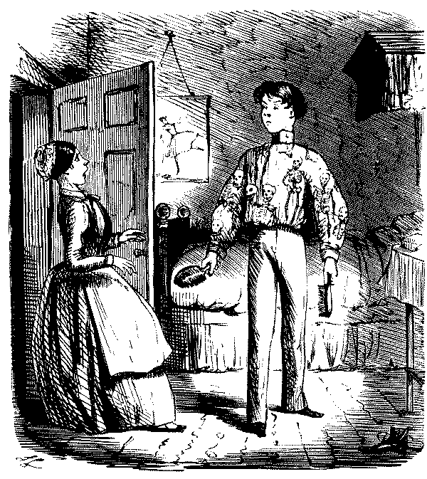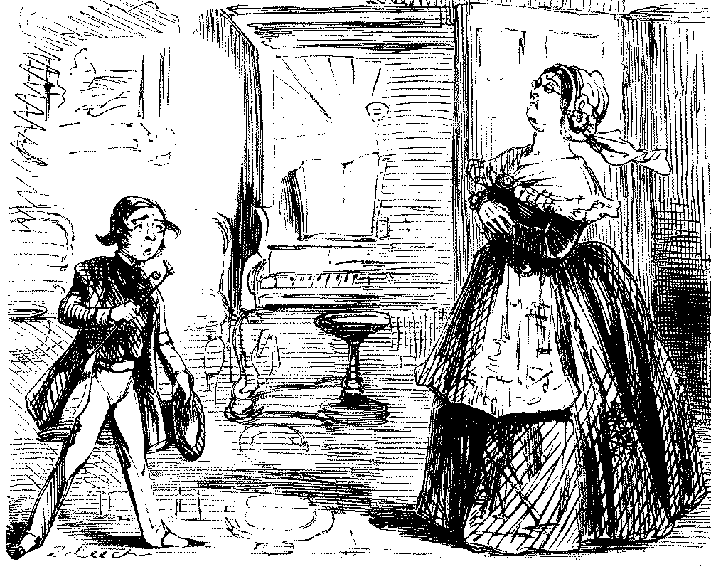 Mistress. "NOW, I DO HOPE, SAMUEL, YOU WILL MAKE YOURSELF TIDY, GET YOUR CLOTHES LAID IN TIME—AND TAKE GREAT PAINS WITH YOUR WAITING AT TABLE!"