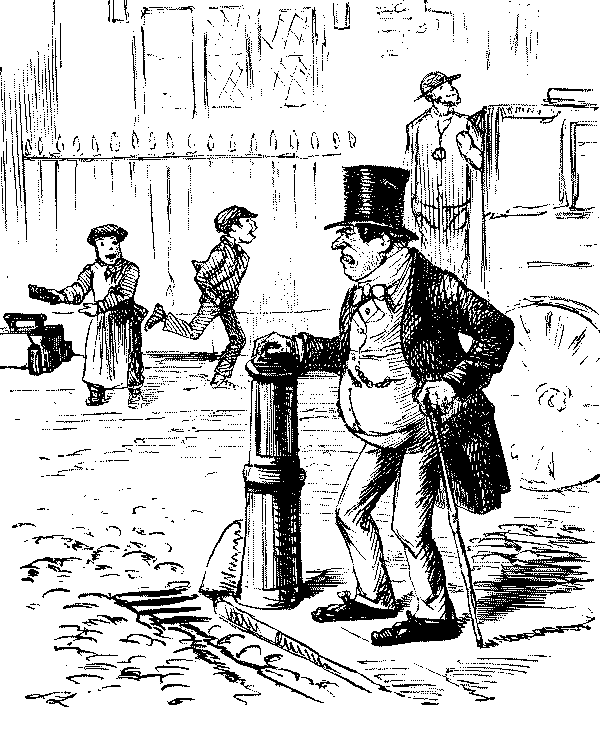 Old Party from the Country (with much wheezing and embarrassment). "I—I—WANT TO GO TO—TO—TO——"