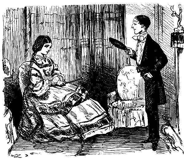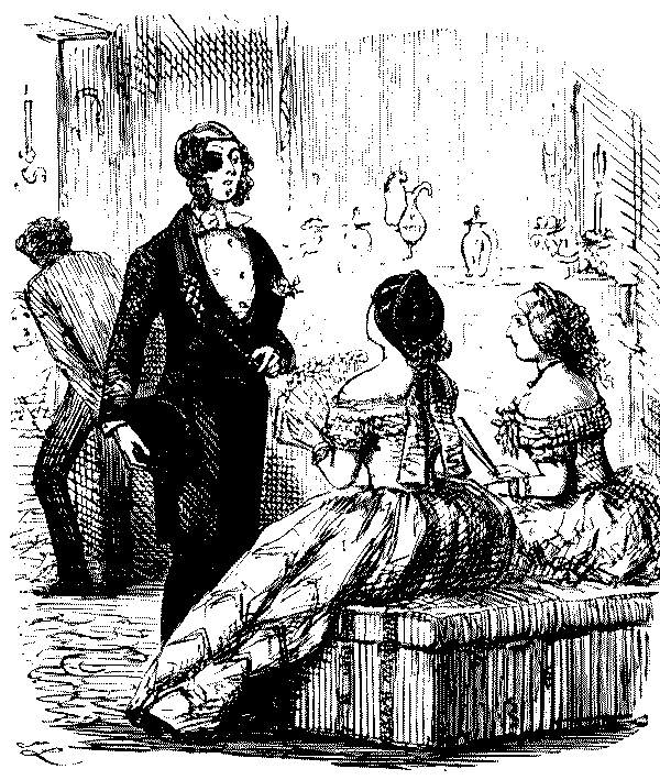 Amy (to Rose). "GOOD GRACIOUS, ROSE—I'M AFRAID, FROM THE WAY THE MAN TALKS, THAT HE IS INTOXICATED!"