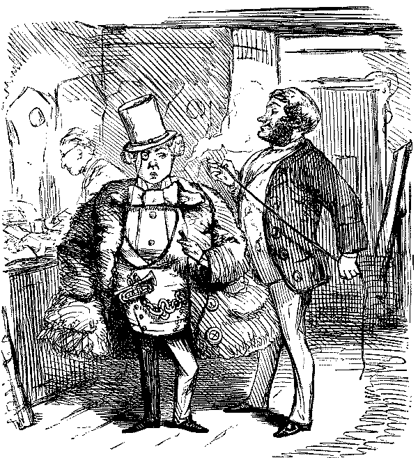 George. "H'M! I SHOULD RATHER FANCY NOT.—YOU DON'T CATCH ME GOING OUT OF AN EVENING JUST TO FURNISH PEOPLE'S ROOMS. WHERE I GO—I DINE!"